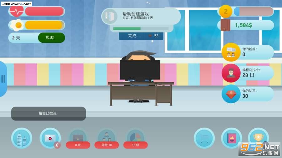 《自由职业模拟器:开发者版中文破解版》是一款十分有趣的商业模拟类游戏,玩家在游戏中是一个身无分文的自由职业者,在游戏的初期,玩家会先获得一些简单的合同,积攒的经验多了以后就可以提升自己的技能和身体素质,等足够成熟就可以创建团队成为商界精英。