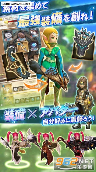 作品的最大特征是,操作简单,自由操作也可享受动态的战斗,并可以通过玩家的喜好来切换横持还是纵持的显示模式。和一同组队的伙伴共同讨伐超巨大的BOSS,更有浪川大辅、小清水亚美等组成的豪华声优阵容为作品增色。