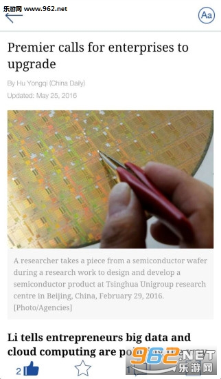 中国日报双语版是中国最大的英文报纸,日均发行90余万份,遍布全球150个国家和地区。了解最新全球资讯和国内动态,中国日报新闻客户端为您呈现热点新闻,时事点评,实用信息,精彩内容,尽在掌握!