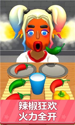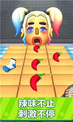 游戏的画面非常的幽默,玩家在这款游戏中一定可以收获到非常多的乐趣,你需要不断的向角色投喂辣椒,让角色们辣到爆炸,你投喂的辣椒越多得分也就会越高哦,快来一起和我挑战吧,看看角色可以坚持多久。