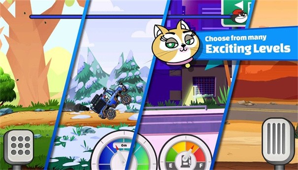 这款游戏当中还具有各种各样的游戏小工具,这些小工具都有自己最独特的作用,玩家们在这里要发挥自己的才智,利用好这些工具的特点才能躲避一个又一个的障碍物,最终先与其他玩家到达目的地,这款游戏玩起来基本上停不下来,还有各种模式和赛车供玩家选择,基本上不会感到厌烦。