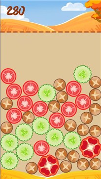2.玩家每点击一次,顶端就会下落新的蔬菜,达到一定积分有新品种。