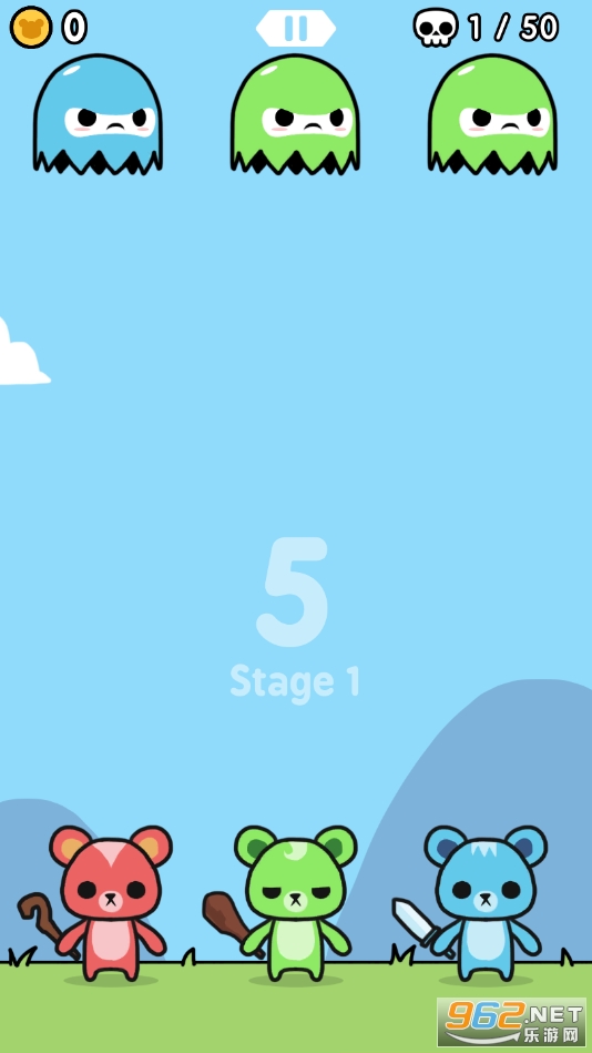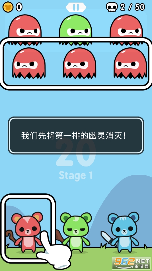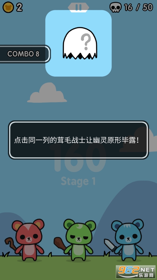 多布王国目前正被狡猾的幽灵群围攻!而作为守护头领,你的任务就是收集最好和最毛茸茸的多布战士,来捍卫你心爱的王国。具体玩法上,游戏中所有操作都可以用点触来完成。游戏开始后,幽灵会从屏幕上方一直向下落,而我们萌萌的守护者们则早已在下方严阵以待。守护者与怪物的颜色一共有红、绿、蓝三种,点击相同颜色的士兵就能干掉对应颜色的幽灵。另外,幽灵必须从屏幕上最下面的一行逐行进行消除。一旦你慢了半拍,又或者按错了颜色的话,很容易会被幽灵给反杀。与此同时,为了增加游戏的难度,在幽灵的大军里面还掺杂着炸弹幽灵和问号幽灵,非常考验玩家的判断能力。