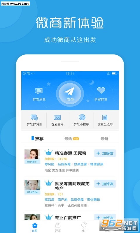 《 群,发安卓版》是一款非常方便实用的群发软件,让你体验非常不一样的拳法体验,即使是群发,也能让你的好友体会到专属定制的贴心感,还可以监测僵尸粉等等功能,快来感受吧。