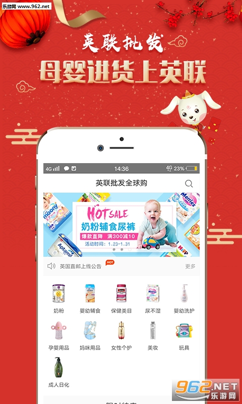 《英联批发官方版》是一款专门做母婴用品批发的平台,平台不仅能给各位商户提供国内的热门商品,更能够提供国外的大牌母婴用品,包括大牌奶粉,用品,洗护等等,各类商品一应俱全,平台有保证,质量过关,让商户们获得高毛利。