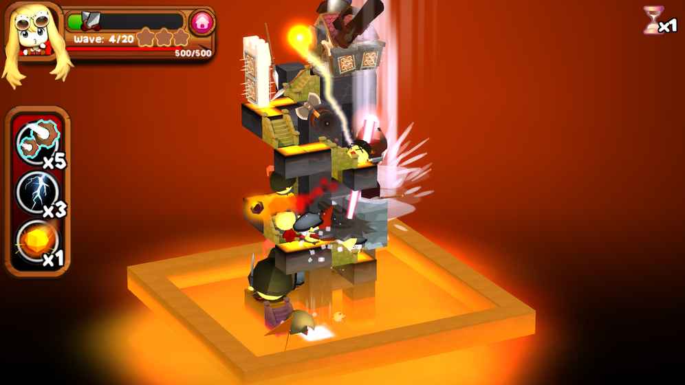 3、真实的小鸡们射过来的箭会被盾牌挡开,滚石被阻挡就会滚歪,重锤还可以把小鸡击飞!