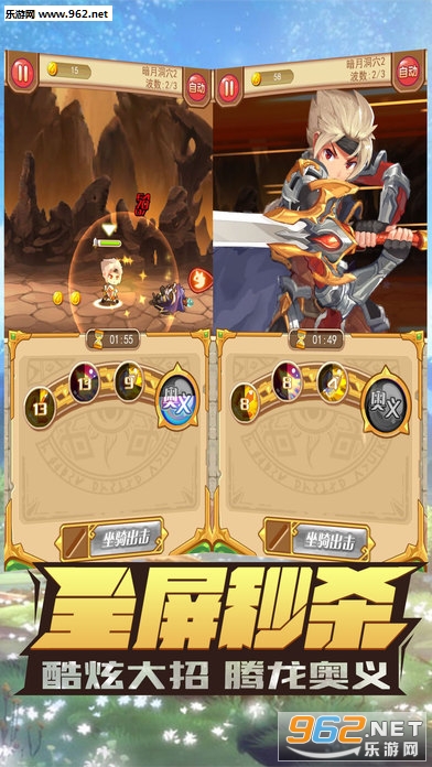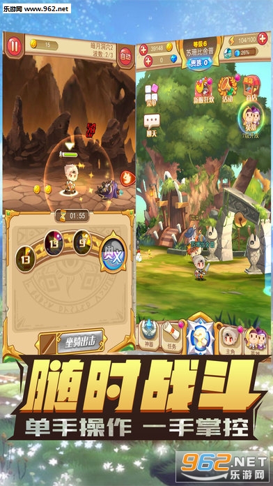 【爆裂绝招 无需等待】独创超前战斗玩法,完全单手操控,随时随地轻松玩。点击杀怪,左右滑动快速游走,奥义大招无限连击。效果震撼华丽,更有全程日语技能配音,激爽无极限!!