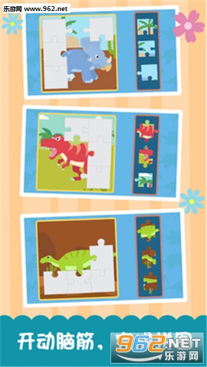 恐龙拼图:游戏图片经过精心设计、色彩斑斓、动画符合儿童玩家的喜好,可以调节难度。