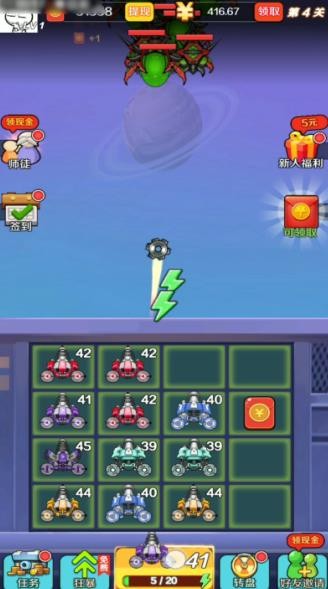 4.游戏操作简单,触碰合并战车升级,根据任务需求点击来射击。
