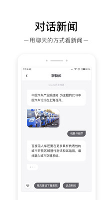 看累长篇大论的文章?全新聊新闻功能,将每天有趣、有料又有用的新闻内容,编辑成对话形式,让你用聊天的方式看新闻。