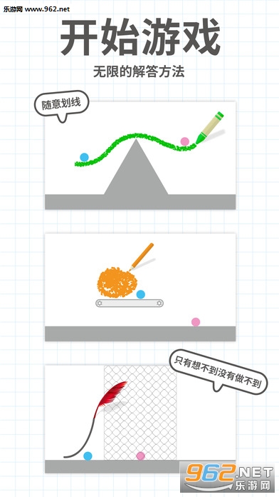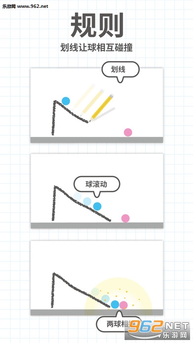 要想过关,只需要使蓝球和红球相撞。自由划线可以让球滚动,你的想象力是过关的关键。