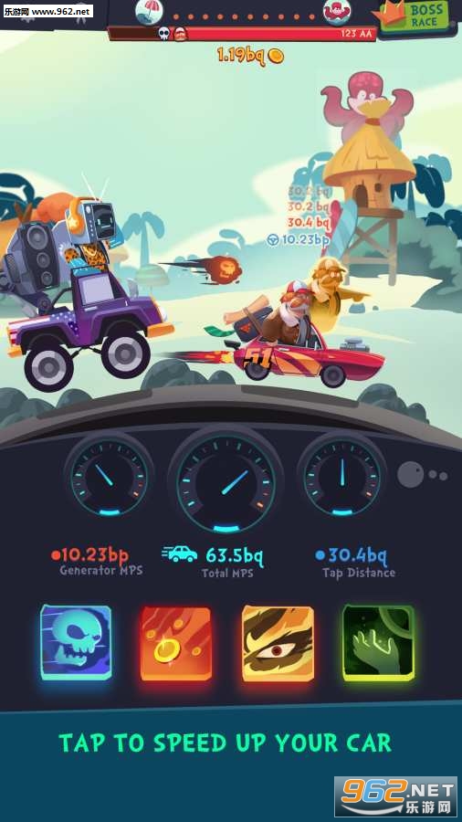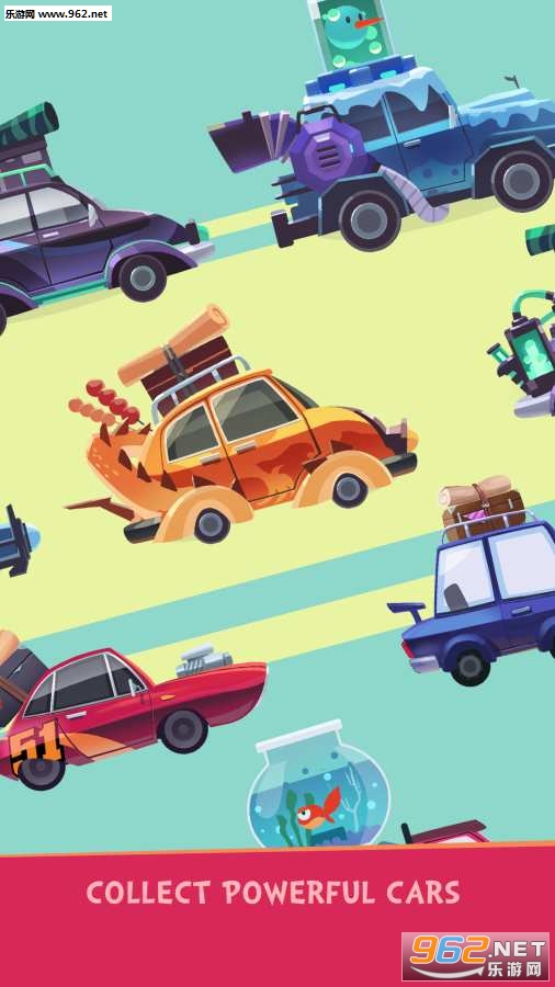 建立你自己的梦幻赛车队,打败boss和探索关卡,收集不可思议的赛车