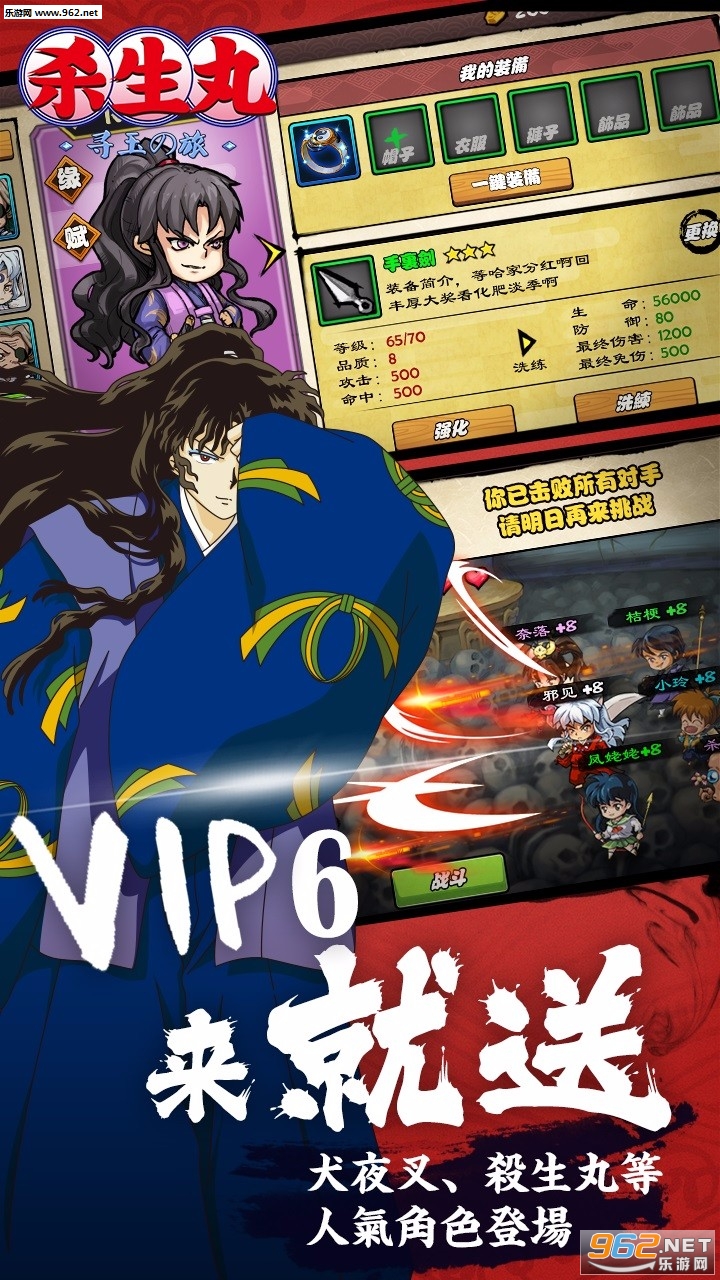 玩家可以自由的选择搭配犬夜叉,杀生丸及奈落阵营的队伍组合,还可以通过宠物系统培育出拥有华丽技能又可爱(霸气)的妖宠!