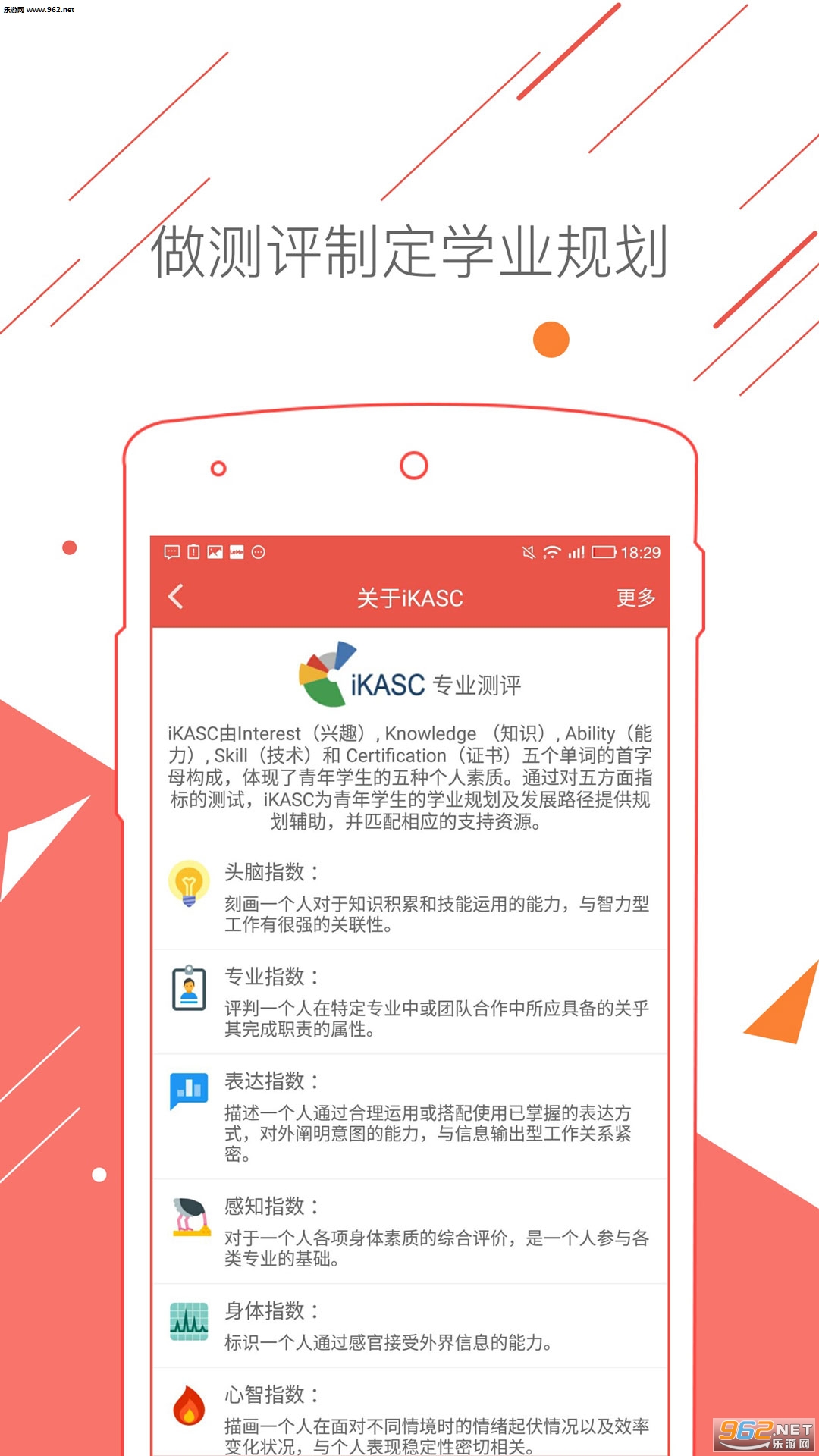 【iKASC专业测评(高考)】针对高考或准高考用户,通过兴趣、知识、能力、技能、资格认证五个维度认知学业状态,匹配合适专业,并提供规划路径。