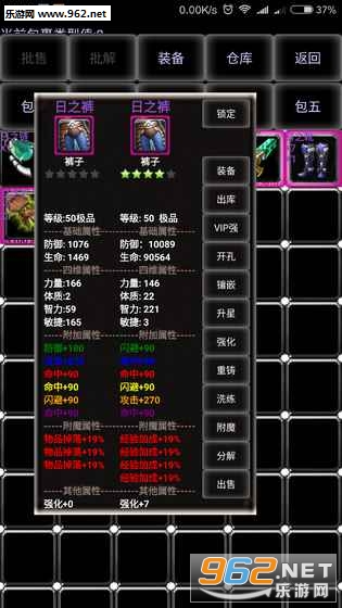 强化 强化石、+1必成、+2几率50%,最高+7,VIP可以直接一键强化直到强化成功