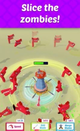 2、点击购买刀片,将奔赴而来的僵尸切成片,切片赚取金币还可以购买更多的刀片。