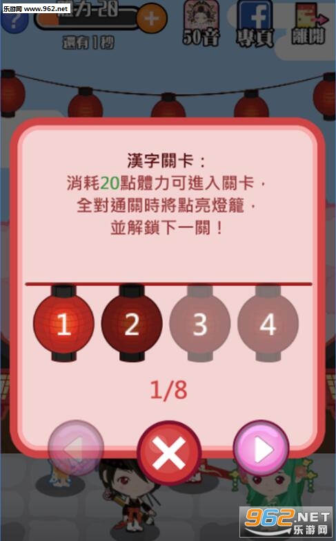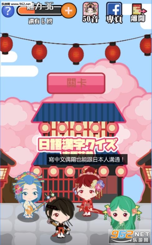 游戏中,每关会出现5个日语汉字题目,