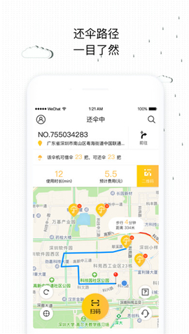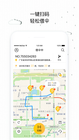 4.人们可以通过此APP快速租用和归还一把伞,用可负担的价格完成有效期限内的伞使用。