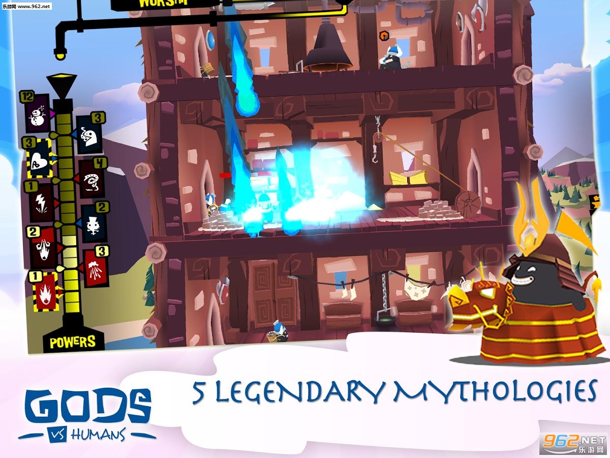 Gods vs Humans《人神大战》以一种另类的视觉展现出古代版的拆迁队大战钉子户,作为拆迁队长的你,有多种多样的方式对付这帮愚蠢的人类。