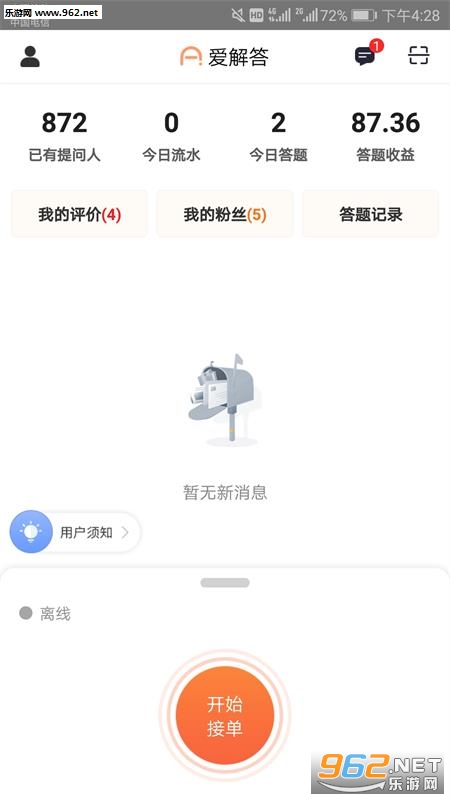 消息提醒,一旦有新的提问订单会自动提醒到解答者;