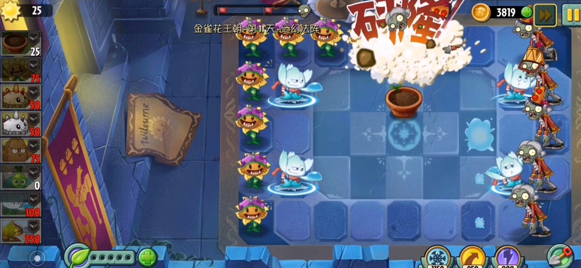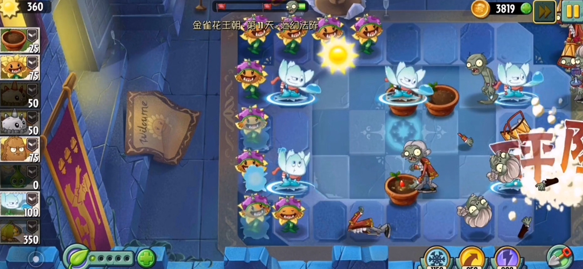 特点:高伤害+减速/冰冻双重控制,三阶后可直接冻结僵尸。