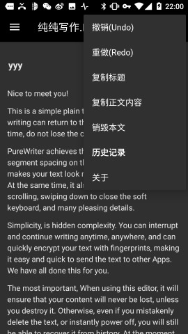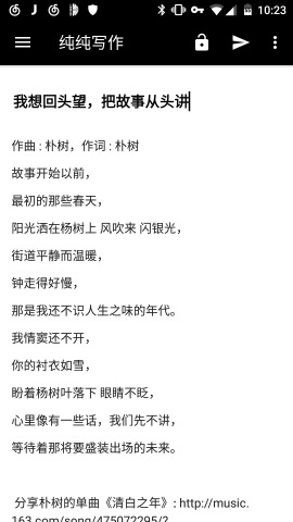 《纯纯写作手机版》是一款为朋友们打造的文字编辑器,软件非常的好用,有着合适的字距和行间距,让人看着舒服,没有一些多彩的界面和繁琐的功能,有的只是让你安安静静写作的界面,给你良好的写作体验。