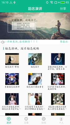 《名人励志格言app》是一款充满了励志鸡汤的正能量教育软件,软件内拥有丰富的励志演讲视频以及有价值的文章出色的励志名句等。用户还能通过软件内的社区和其他用户进行交流,一起成为正能量的传播大使!
