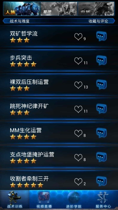 随身星际副官app更能让你随时随地观看视频直播,潜心研究地图要点,能够真正作为您身边的副官,从多角度全方位的提升您在星际争霸中的游戏体验。