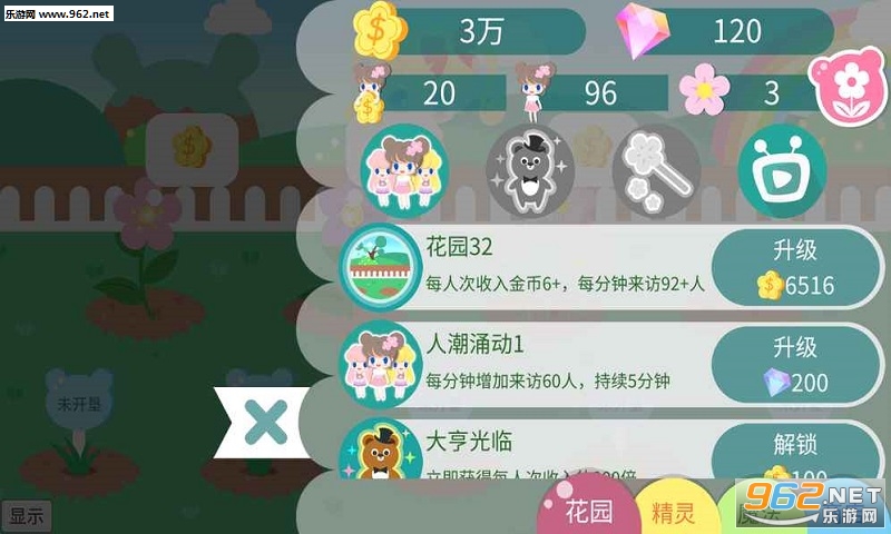 提升技能:使用技能让您的花园有更多来访者,获得更多的收益。