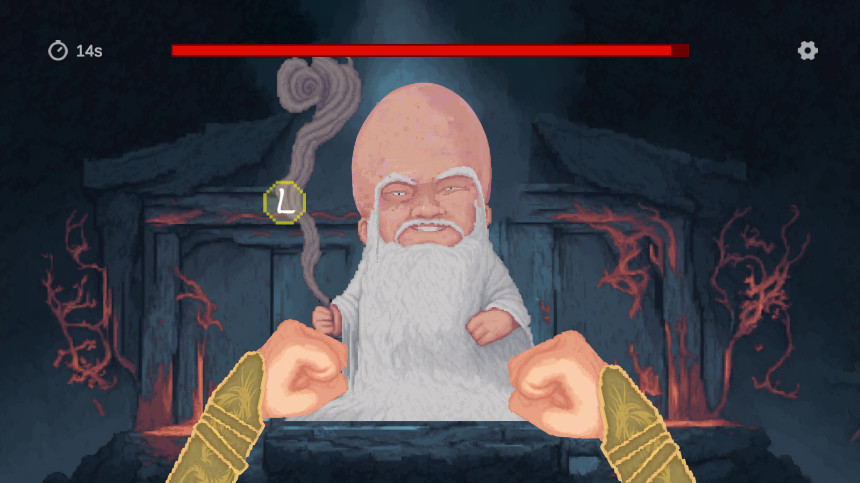 4、当血条值归零时,仙翁会进入第二阶段,这时候攻击它可就没那么简单,因为你的出拳攻击随时会被躲开,出现MISS的情况,长时间未击中目标,且时间归零,则游戏失败,无法继续进入下一个环节。