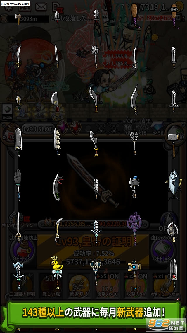 1、武器有100种以上种类超级全,没有什么能够挡住勇者们经过强化之后的神器