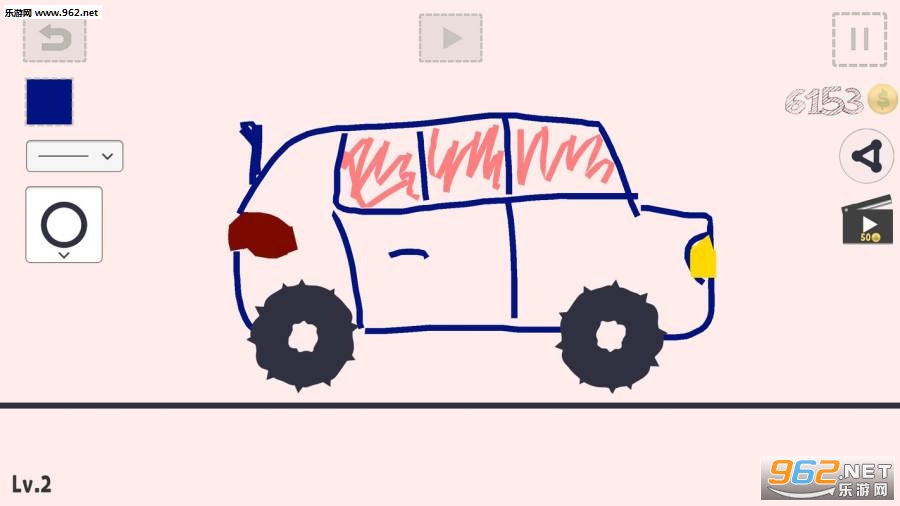 刚点进游戏的我有点懵逼,就两个车轱辘摆在那儿,干嘛?戳轮胎玩?结果发现要我自己画辆车出来,天生不适合画画的我也就这个水平了。