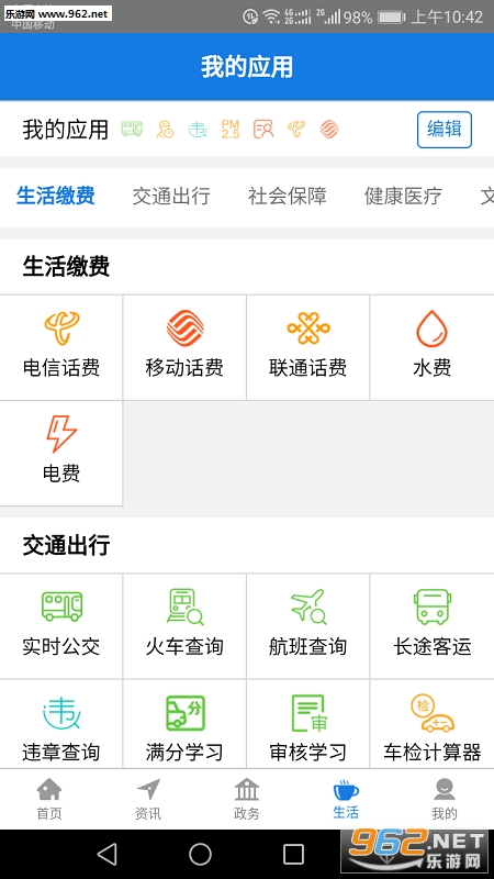 交通出行:实时公交、火车、航班、客运查询;违章查询、驾考预约等;