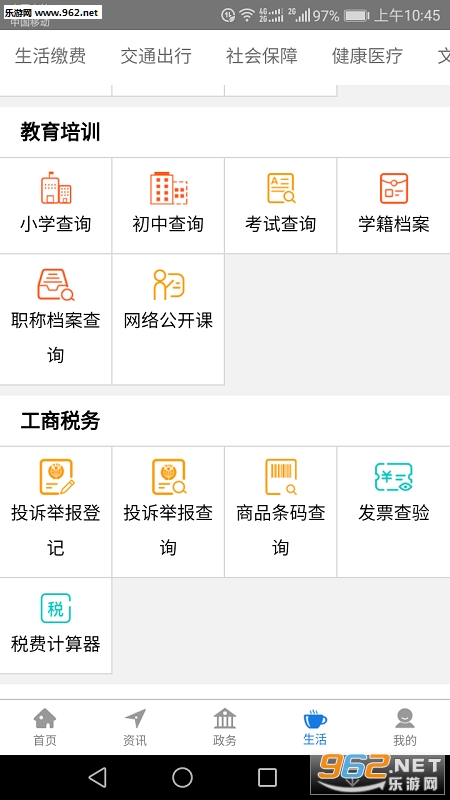 教育培训:考试成绩、学籍档案等信息查询;