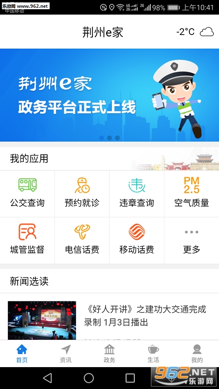 荆州e家是一款专注服务湖北省荆州市市民的APP软件,以政务服务“一次办好”为主题,集新闻资讯、便民生活为一体,是继湖北省政务服务APP“鄂汇办”之后全省第一家上线的政务服务综合平台。
