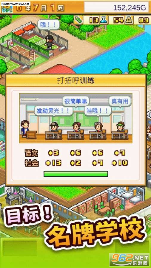 开罗经典像素模拟经营类游戏,游戏以经营校园为主题,玩家在游戏中需要注意的是正确地提升学校品质和口碑,目的是让更多的学生可以到我们经营的学校中来。了解每个设施,要正确去提升它们的等级获得更多分数加成,因为学生和老师在使用这些设施也会获得更多能力加成,所以很关键的一点。