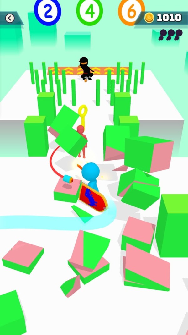 控制武士挥舞在手中的双剑,以破坏块的前面,来尝试一下。