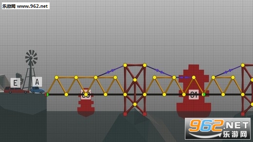 在这个部分里,阴险的《Poly Bridge》会先用一些练习简单三角结构和悬吊结构的关卡把我们勾引过去,等我们沾沾自喜的自认为自己已经掌握了建筑学的神机妙算时,它就会忽然跳出来,用液压系统、复杂的吊索、奇怪的地形乃至于过往的轮船与热气球等奇葩玩意儿摧毁我们刚刚建立起来的信心,让我们惊奇的发现,自己要么是智商不够,要么就是小时候积木玩的太少。