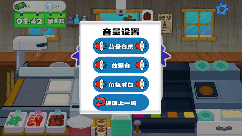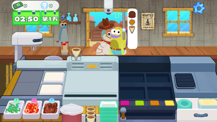 4、客人在用餐后,会支付一定的费用,在此赚取的收入用于布置餐厅升级设施,购买更多的食材,以扩大经营规模,成为蟹堡王传奇西部篇最大的经营体。