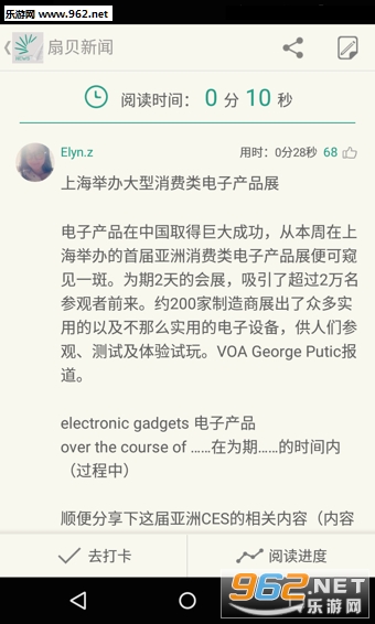 4. 特别的,扇贝新闻可以记录你每天的学习进度,包括完成的文章数,被激活的单词数,将你日积月累的进步通过图表生动的展示。