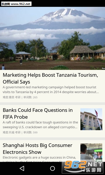 1. 对于每篇文章,都会高亮各个等级(例如四六级,雅思,托福等)所要求的词汇,帮助你留心有用的词。