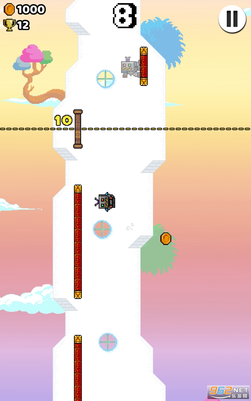 Wall Kickers游戏是一款玩法简单的像素风格向上跳跃类游戏,在游戏中你将会控制身手敏捷的主角来进行攀墙跳跃,向忍者一样攀附在墙面上然后点击屏幕进行跳跃,注意当你爬的越高的时候危险也就越大,游戏中的障碍会随着你挑战的时间越来越多,不要碰到尖刺。游戏中还拥有各种不同功能的墙面,它们能够给你制造更多的麻烦哦。