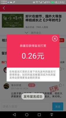 新闻中随手留言可拿钱,优质跟帖可得更多。任性提现,让您的观点变得“有价”,满足您的成就感。