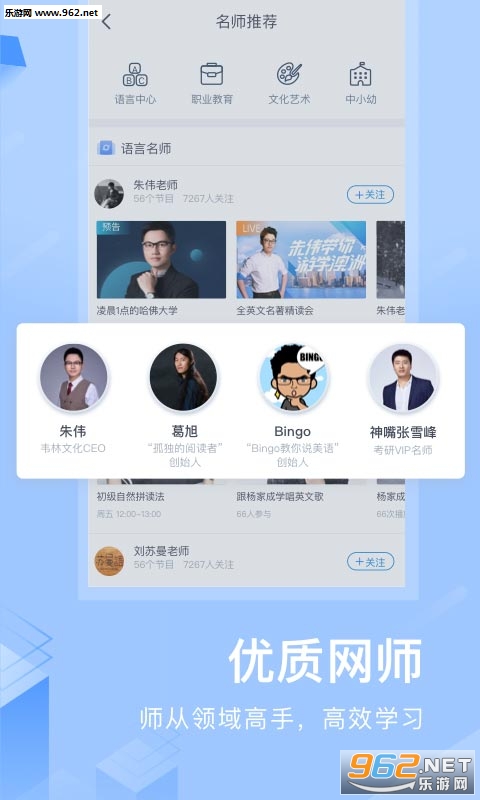 名师朱伟&葛旭、考研神嘴张雪峰、明星私教Bingo、网红名师拂菻坊&山下智博、全国语文名师史金霞……