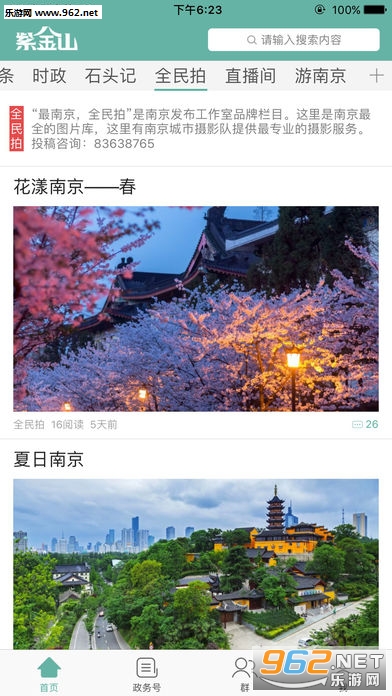 紫金山新闻客户端下设新闻、政务号、社群三大版块,以“内容+服务”的运行模式,倾力构建南京人智慧生活的掌上平台。
