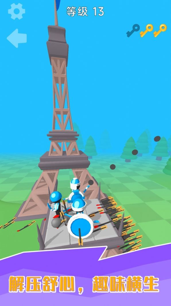 3、在你进入每一关之前,你还可以调整你的射击姿势和角度,使箭矢更加准确。