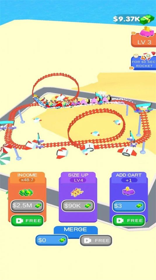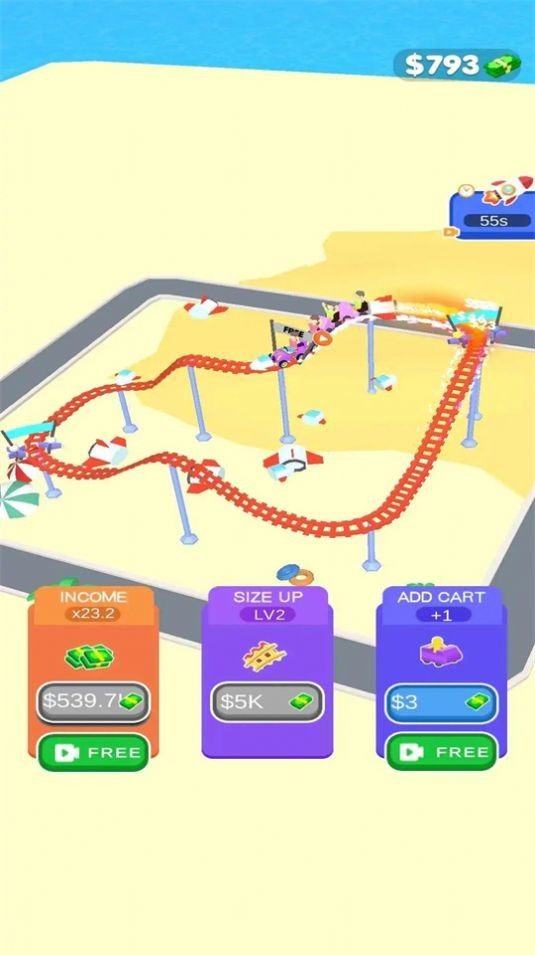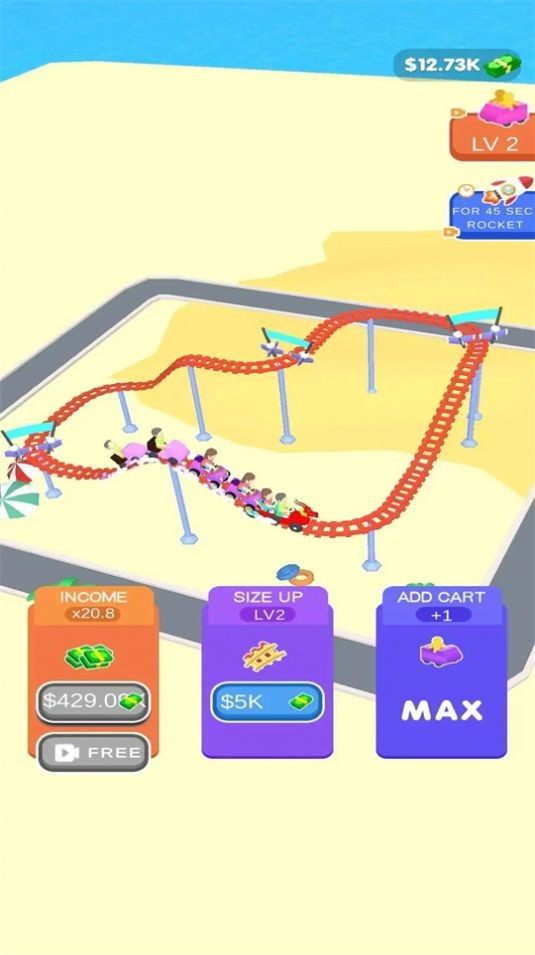 空闲疯狂过山车是一款不错的模拟经营主题公园游戏,在这里玩家能够创建和管理自己的游戏乐园,玩家自己的维护好你的游乐措施,能够保证自己的安全快乐,同时也要控制好人流,保证能够赚取更多的金币,合理的规划游乐城!