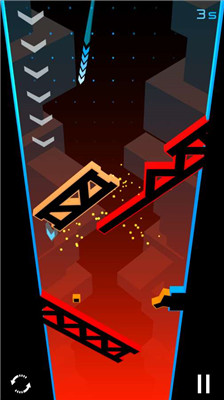 穿梭效应是一款科幻躲避游戏,游戏中,玩家要控制一个箭头方块向下滑落,过程中需要躲避迎面而来的障碍物。