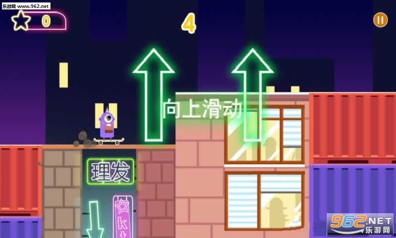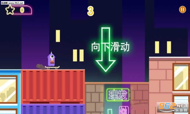 这款游戏是以一个动画角色为主角的一款橡胶游戏,你需要帮助橡胶先生逃跑,当然,橡胶先生是滑着滑板的,在城市之间滑动,你看到霓虹灯的后面了,在到达更远的地方,这里有很多陷阱,楼与楼之间存在着高度和距离,你不能让橡胶先生从楼顶掉下来,由于是滑板,你就需要控制好楼和楼之间的差异,这样才能滑行到更远的地方。