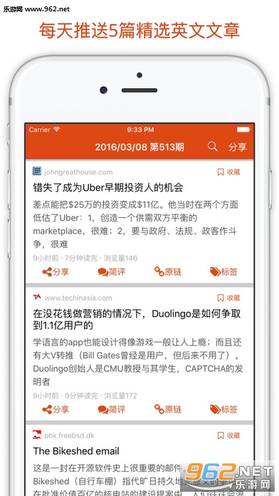 关注互联网、创业、技术。每天推送5篇高质量英文文章(支持 Apple Watch)。坚持每天阅读,每天进步一点点。